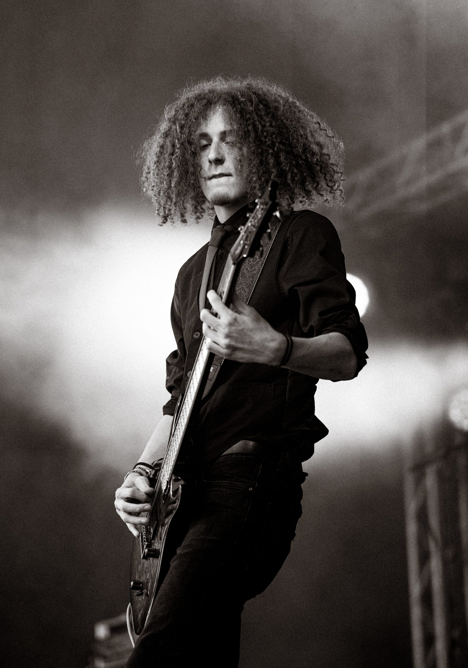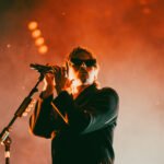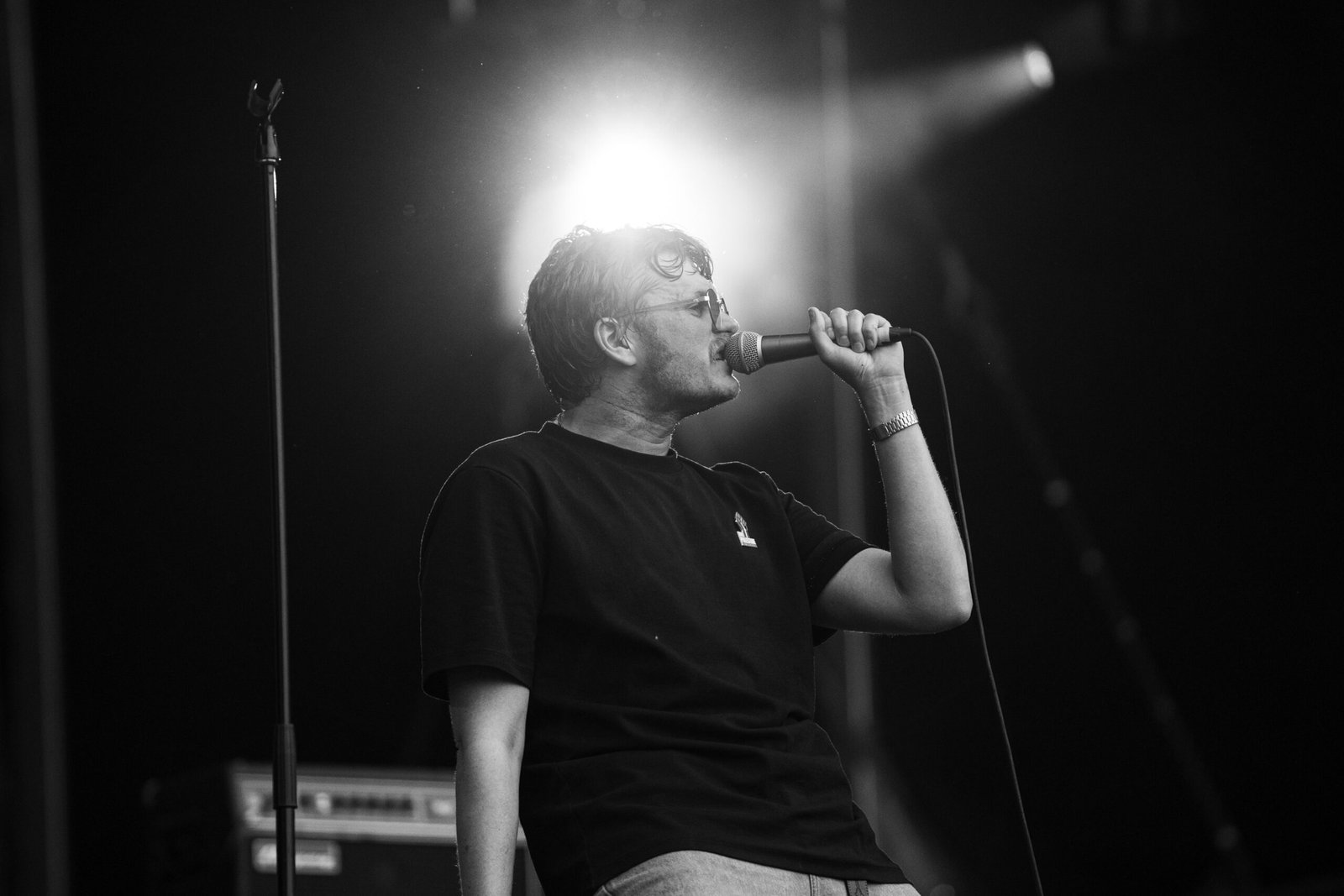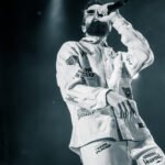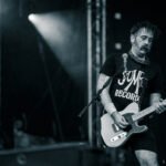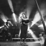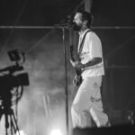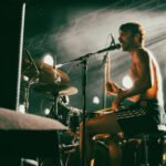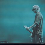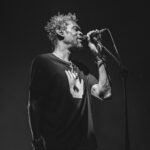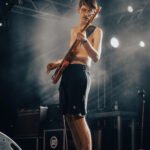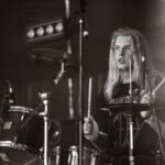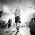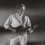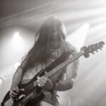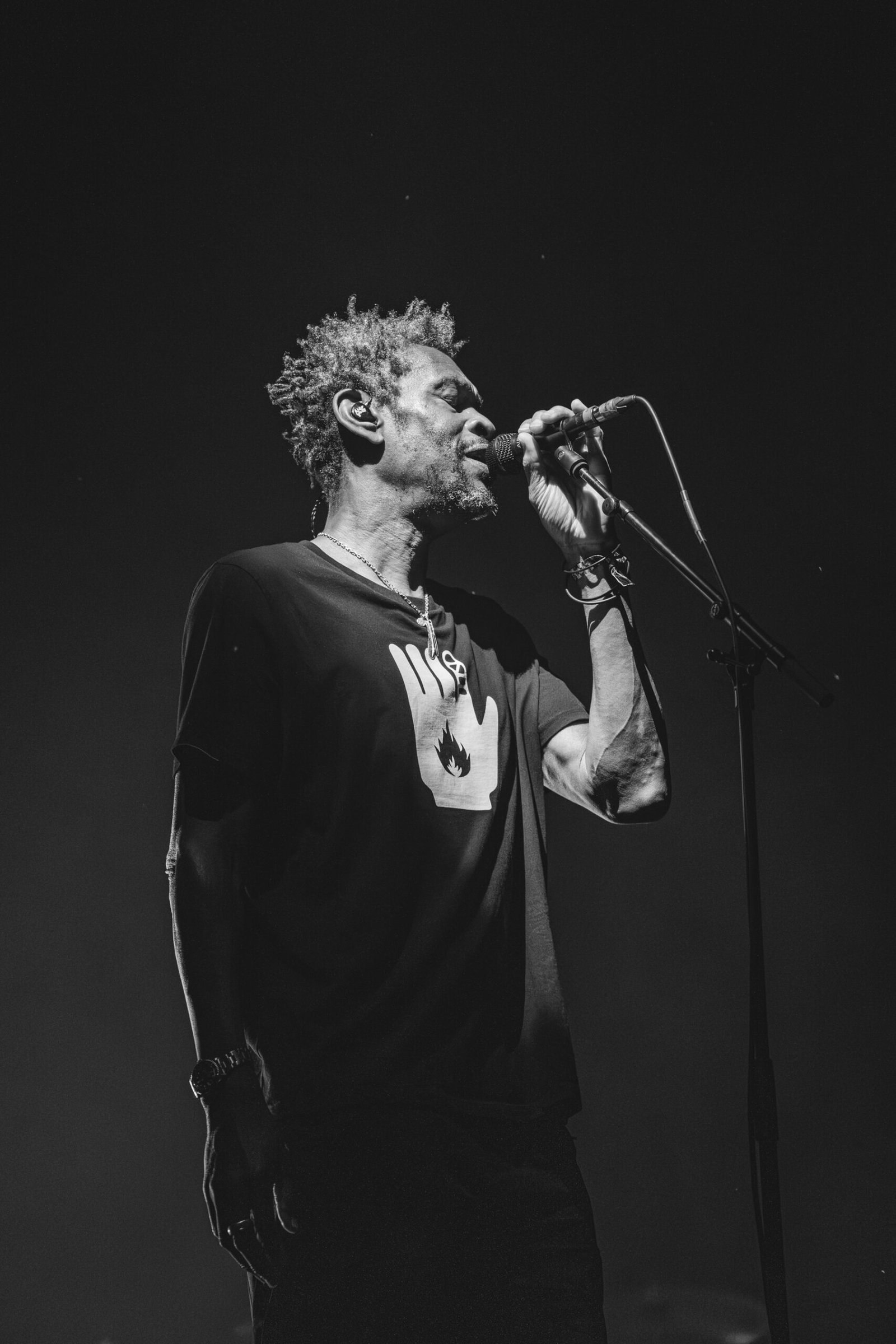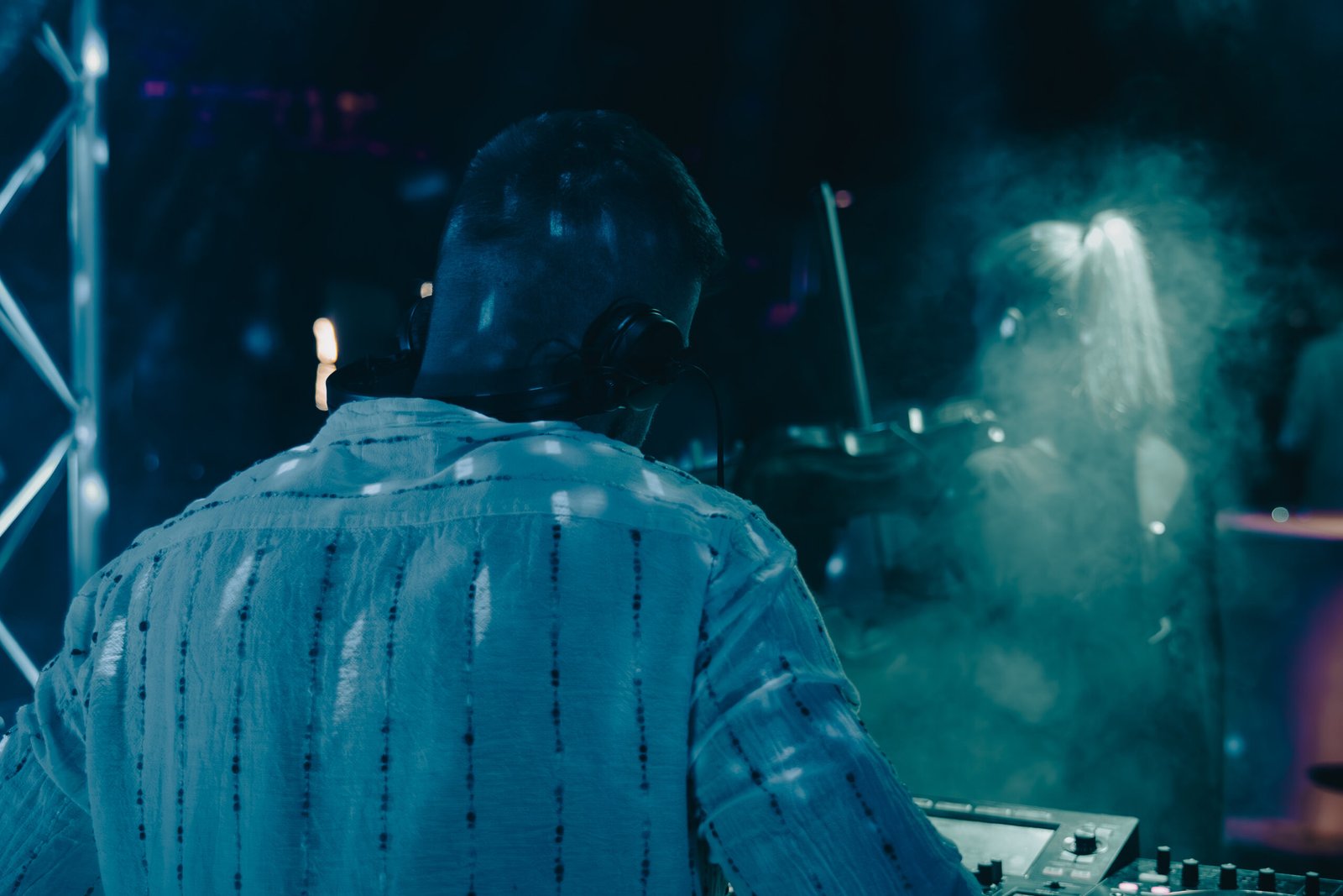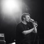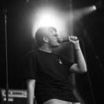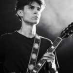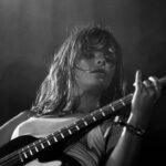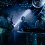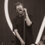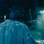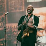 Crno-bijela fotografija saksofonista na pozornici, s blagim zelenkastim nijansama, stvarajući dramatičnu atmosferu tijekom nastupa