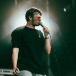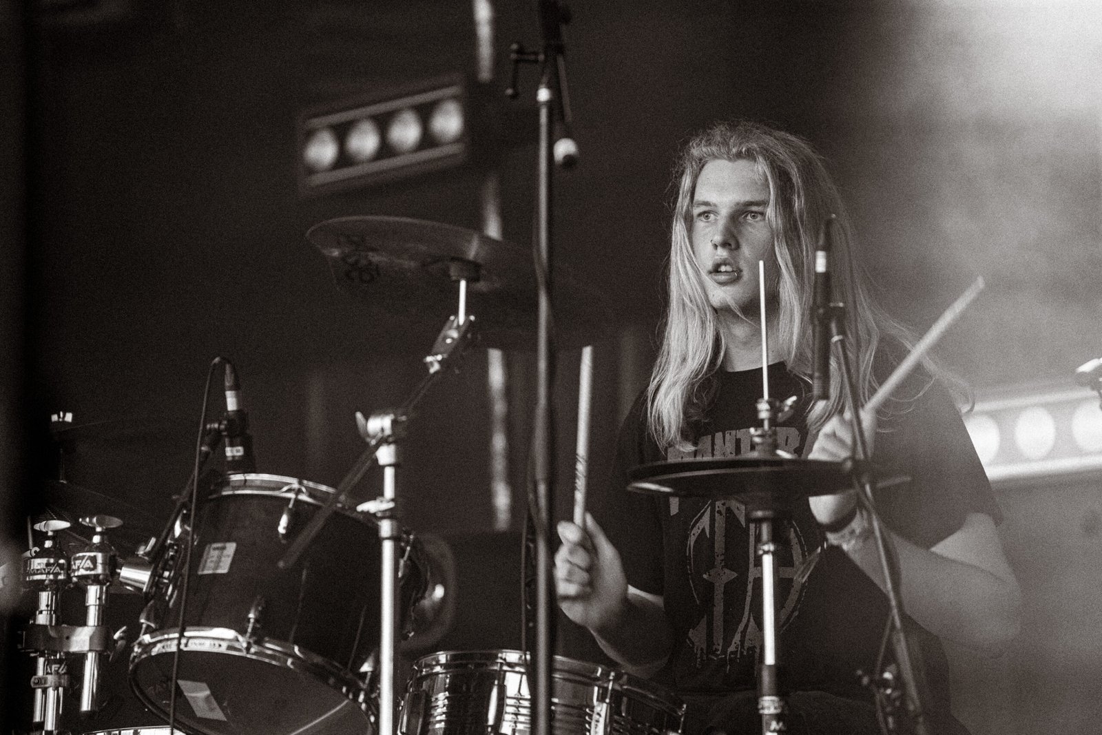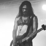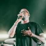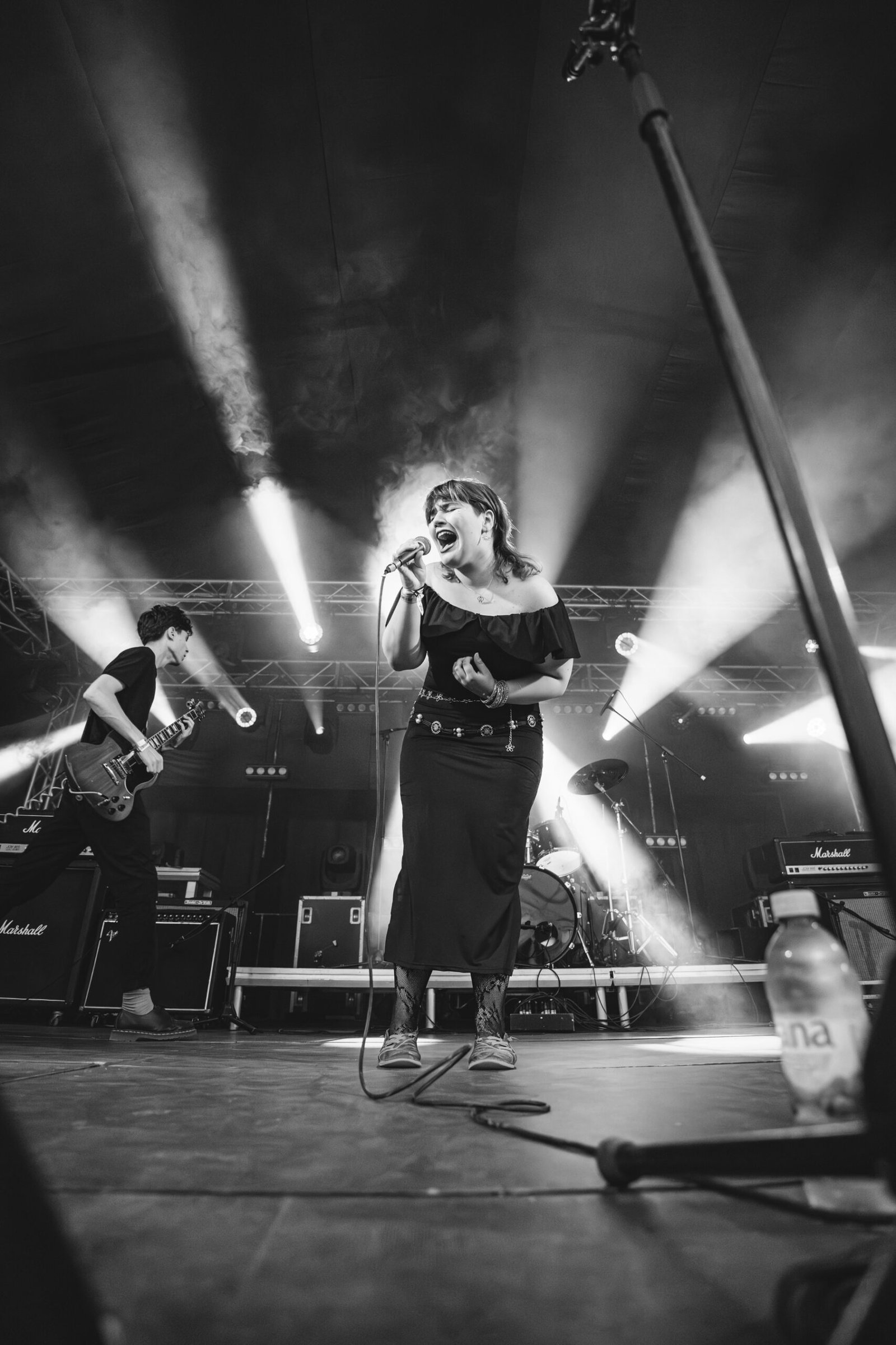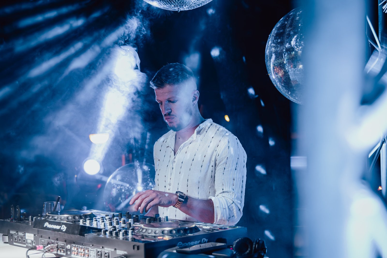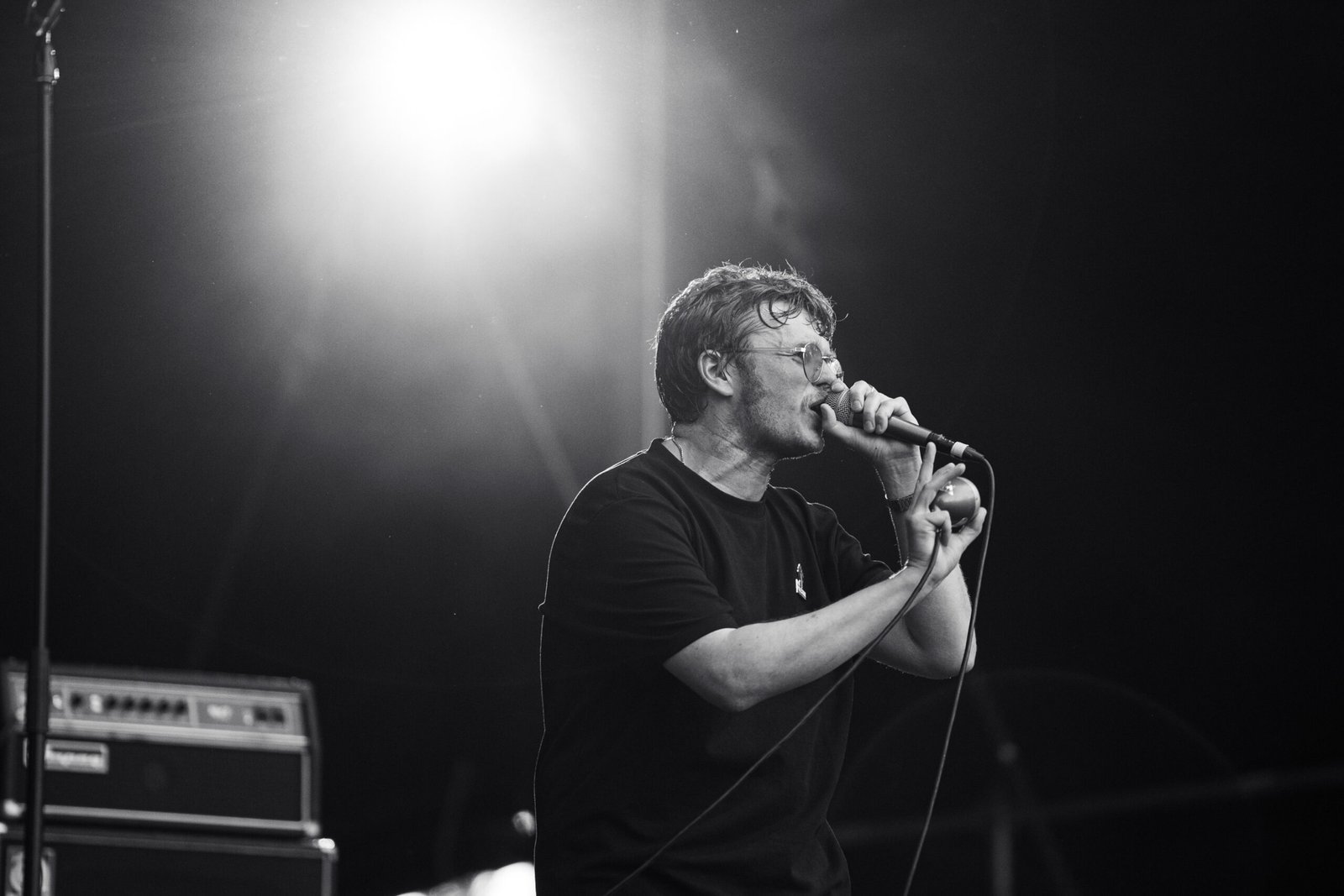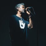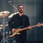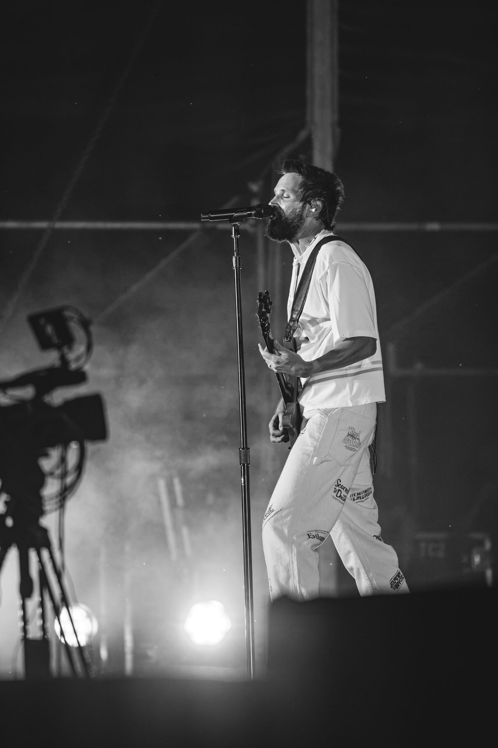 Crno-bijela fotografija saksofonista na pozornici, s blagim zelenkastim nijansama, stvarajući dramatičnu atmosferu tijekom nastupa