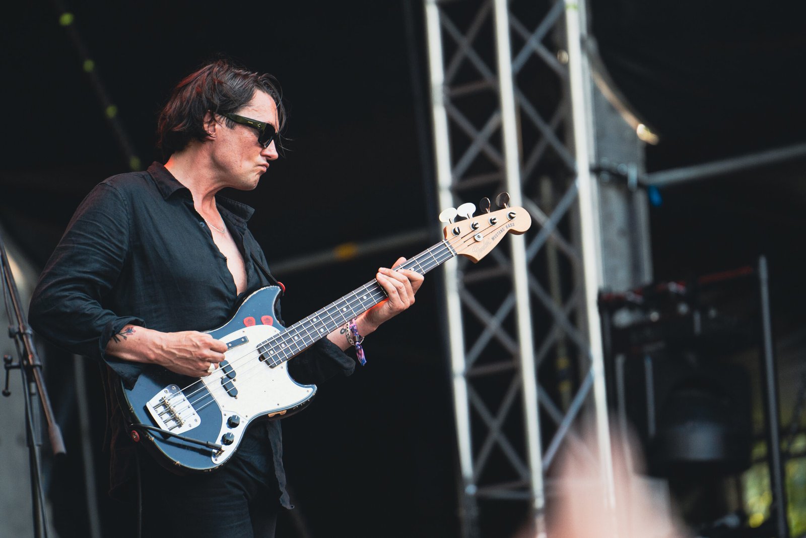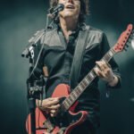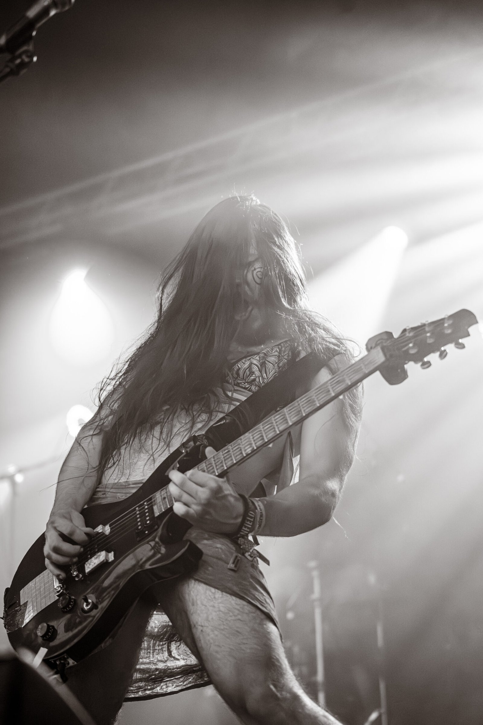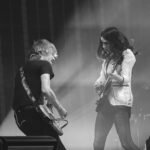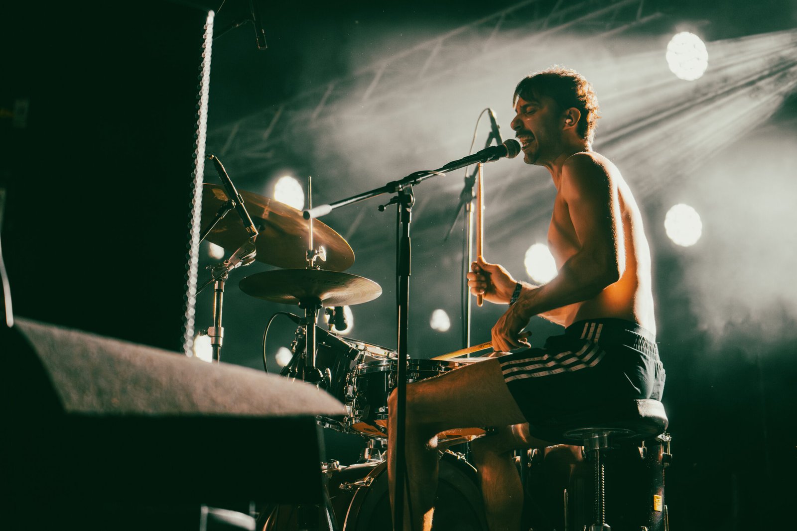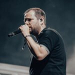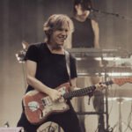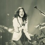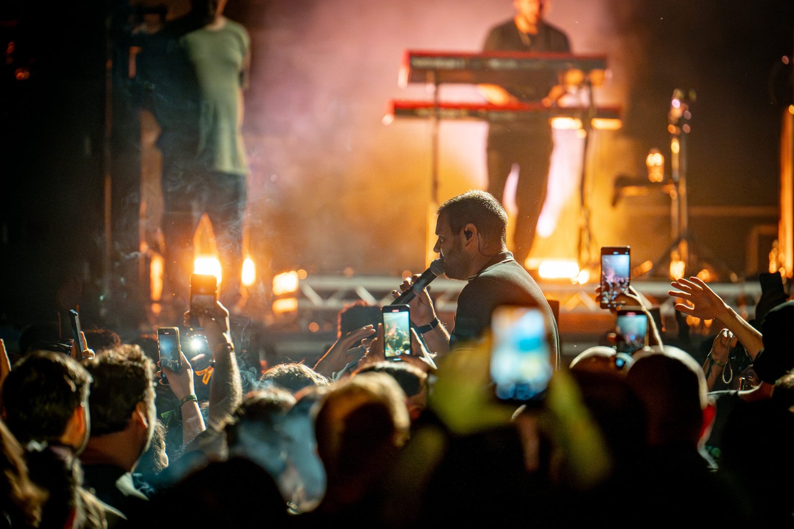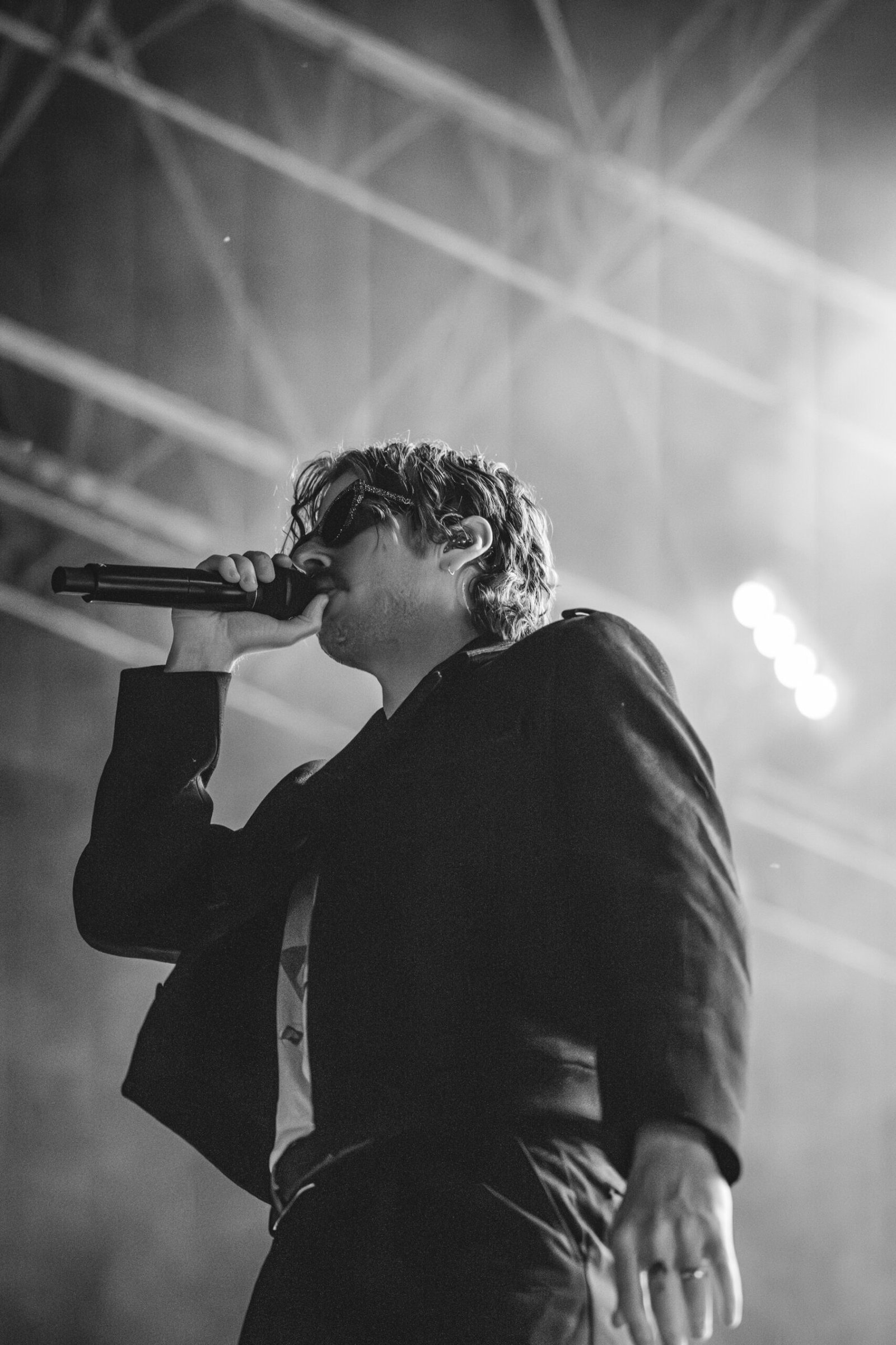 Crno-bijela fotografija saksofonista na pozornici, s blagim zelenkastim nijansama, stvarajući dramatičnu atmosferu tijekom nastupa