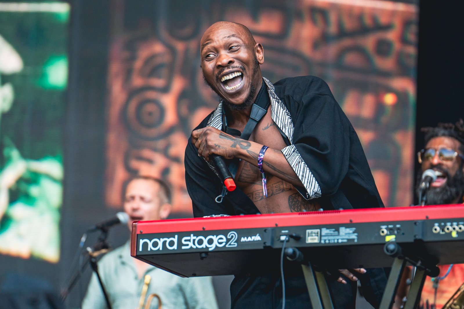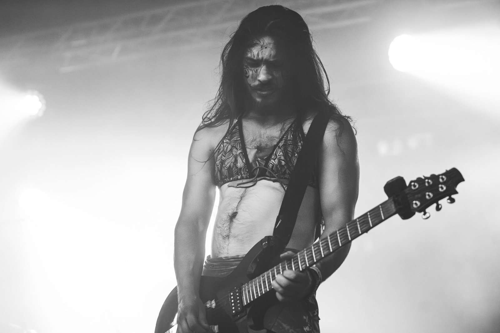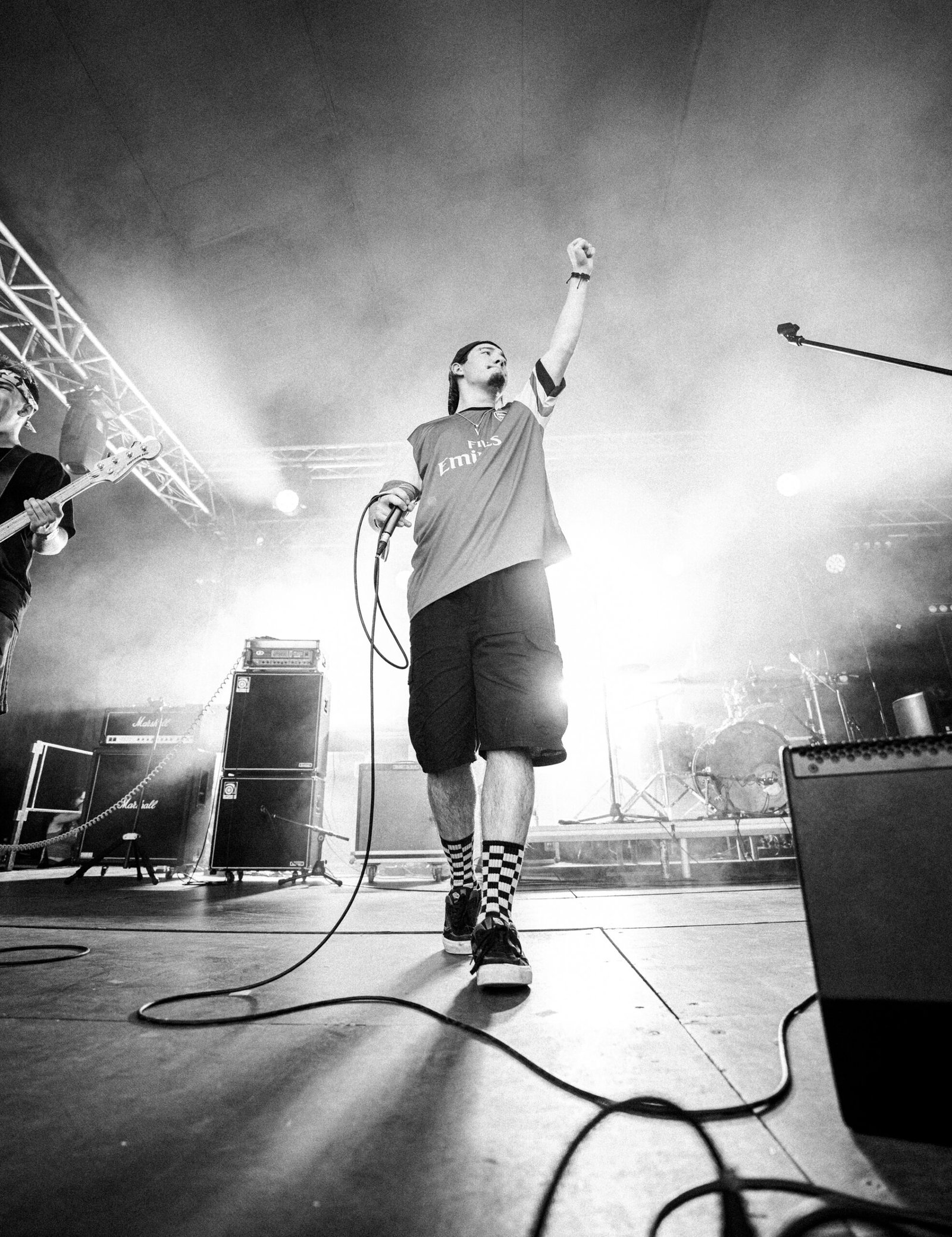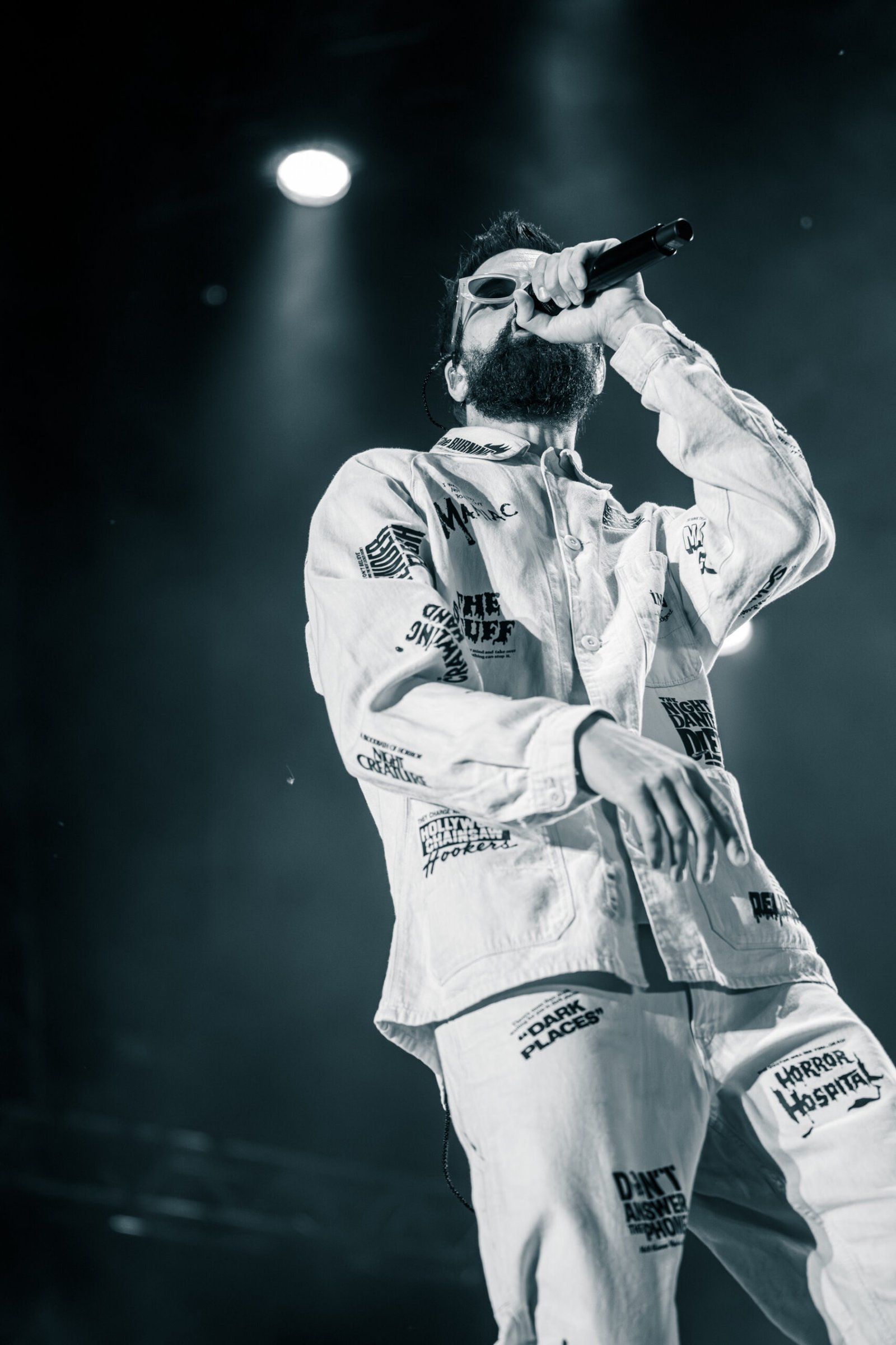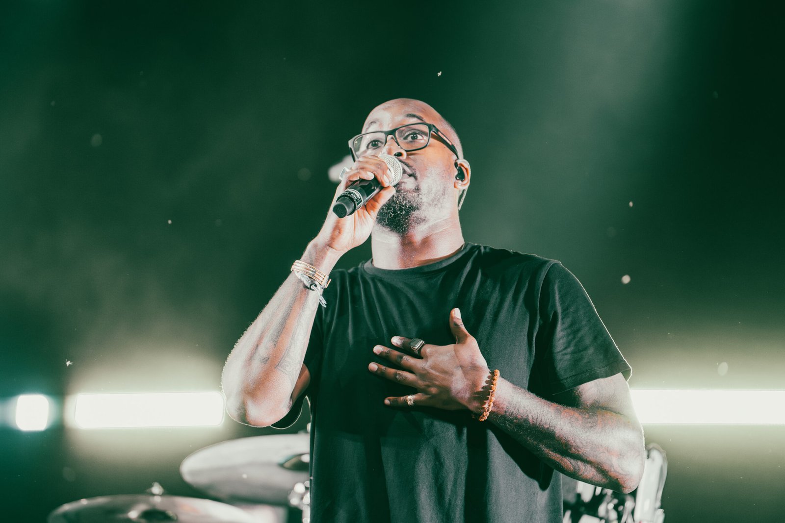 Crno-bijela fotografija saksofonista na pozornici, s blagim zelenkastim nijansama, stvarajući dramatičnu atmosferu tijekom nastupa