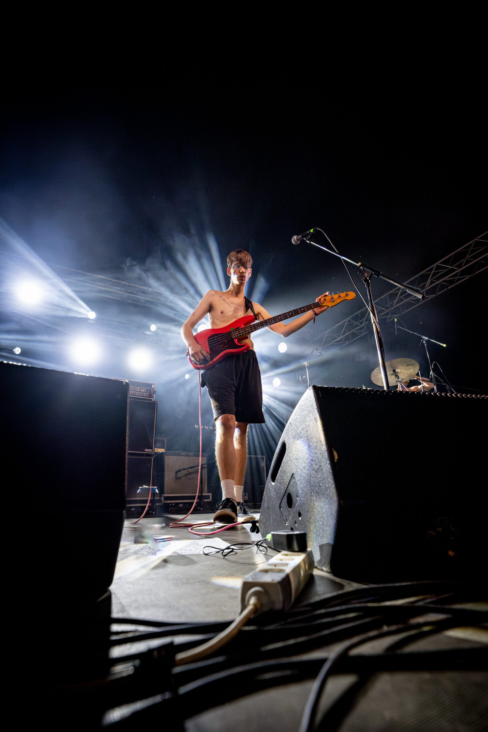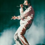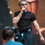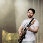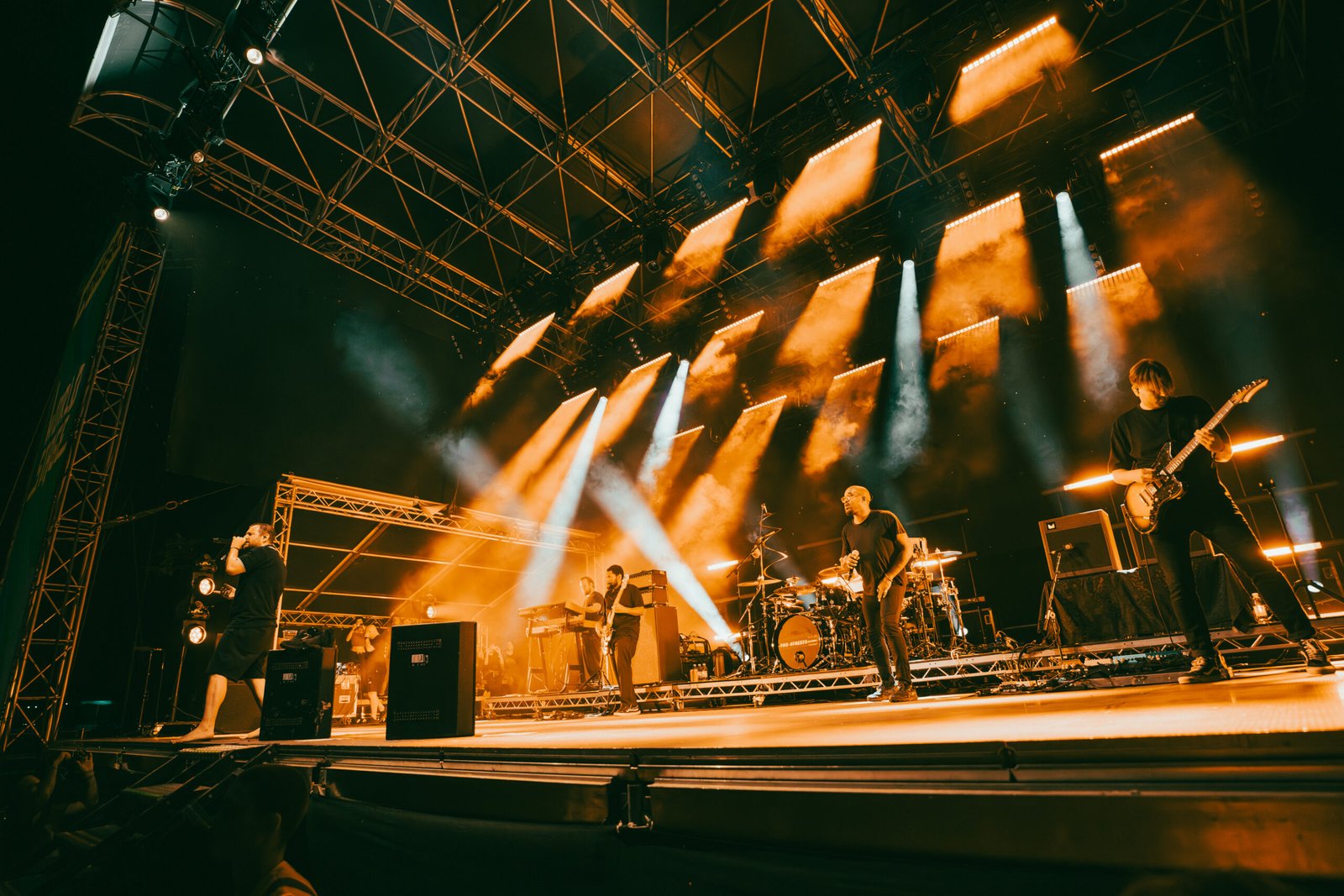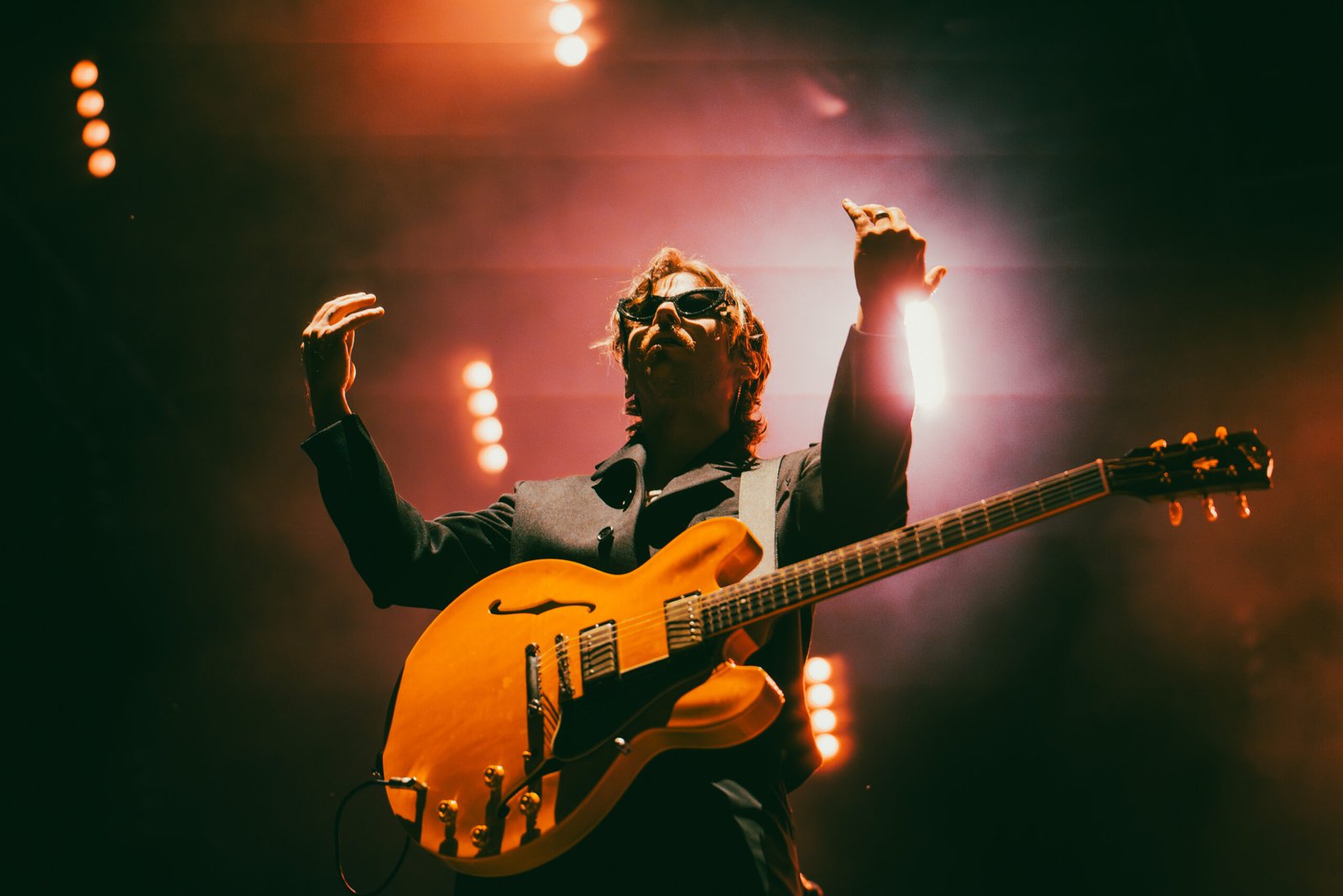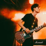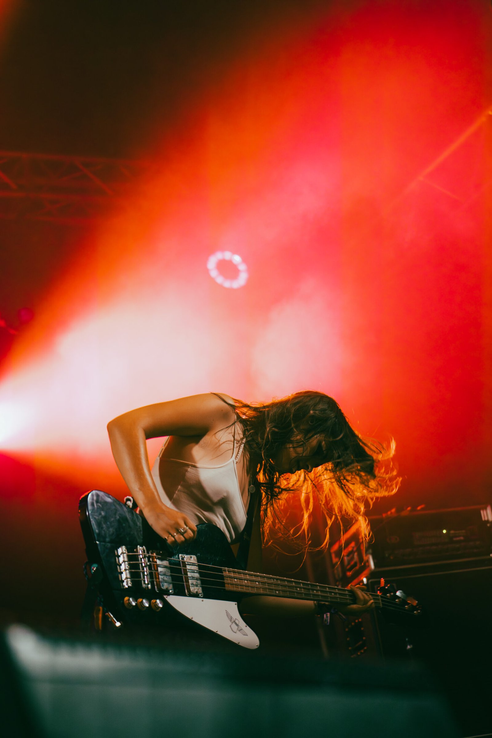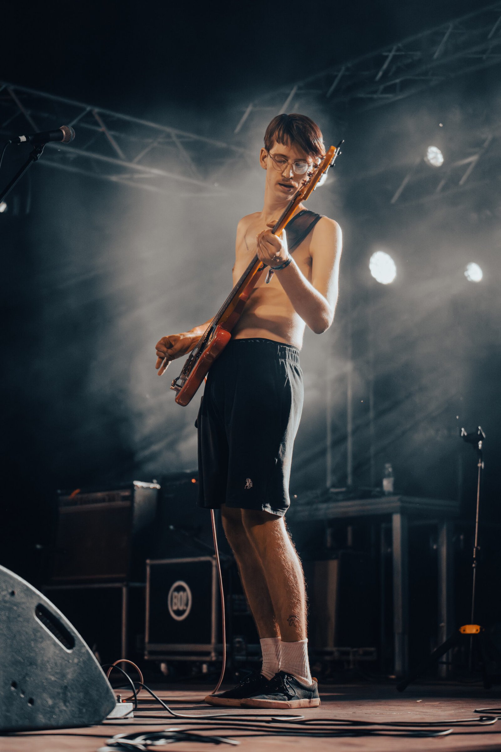 Saksofonist na pozornici iz donje perspektive sa zlatnim svijetlom iznad njega
