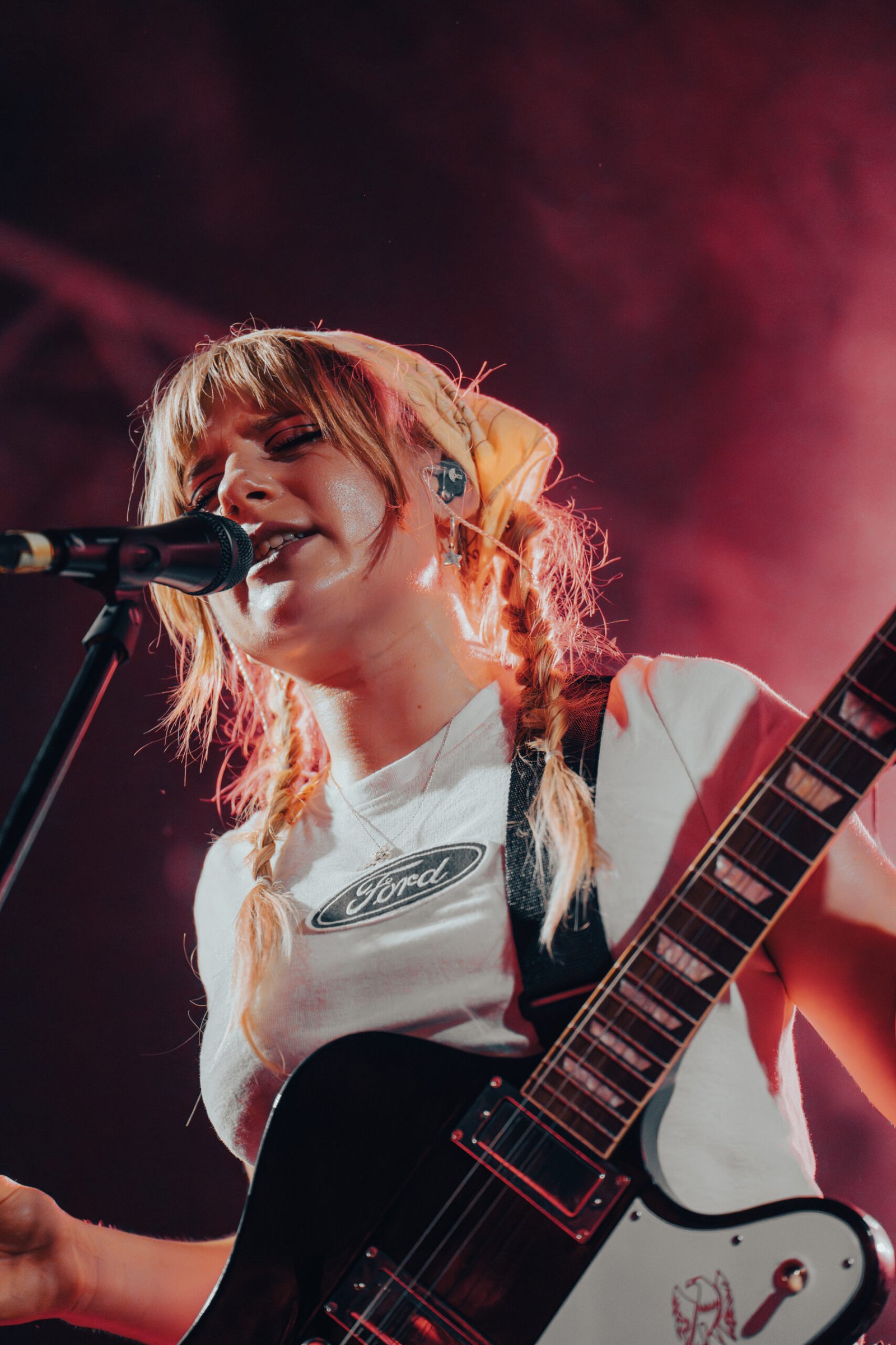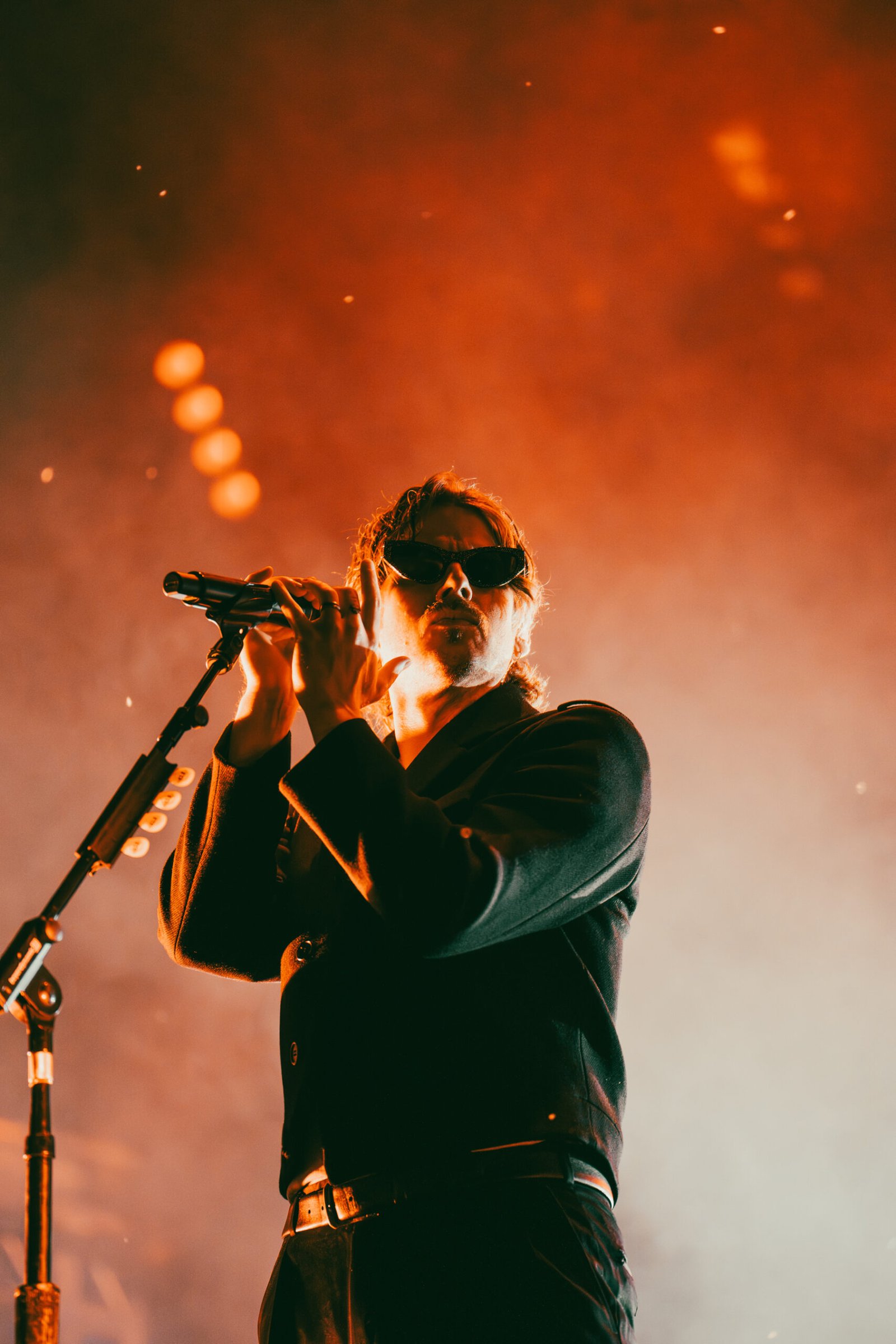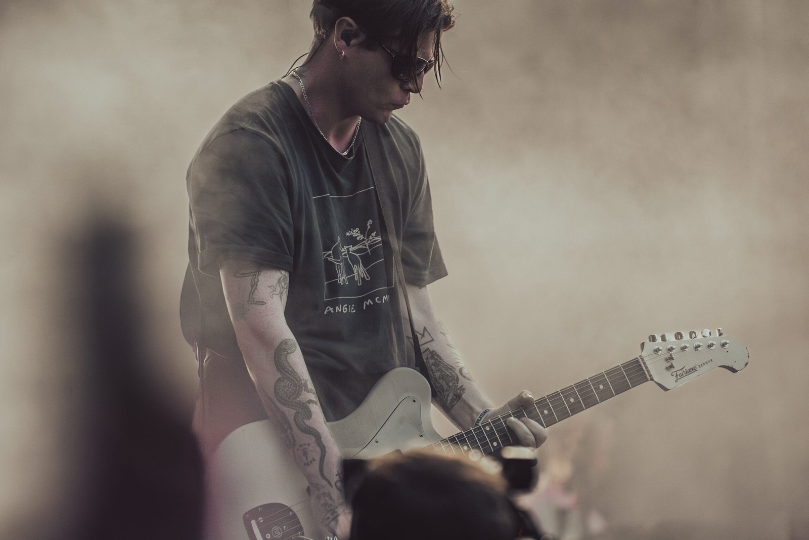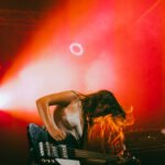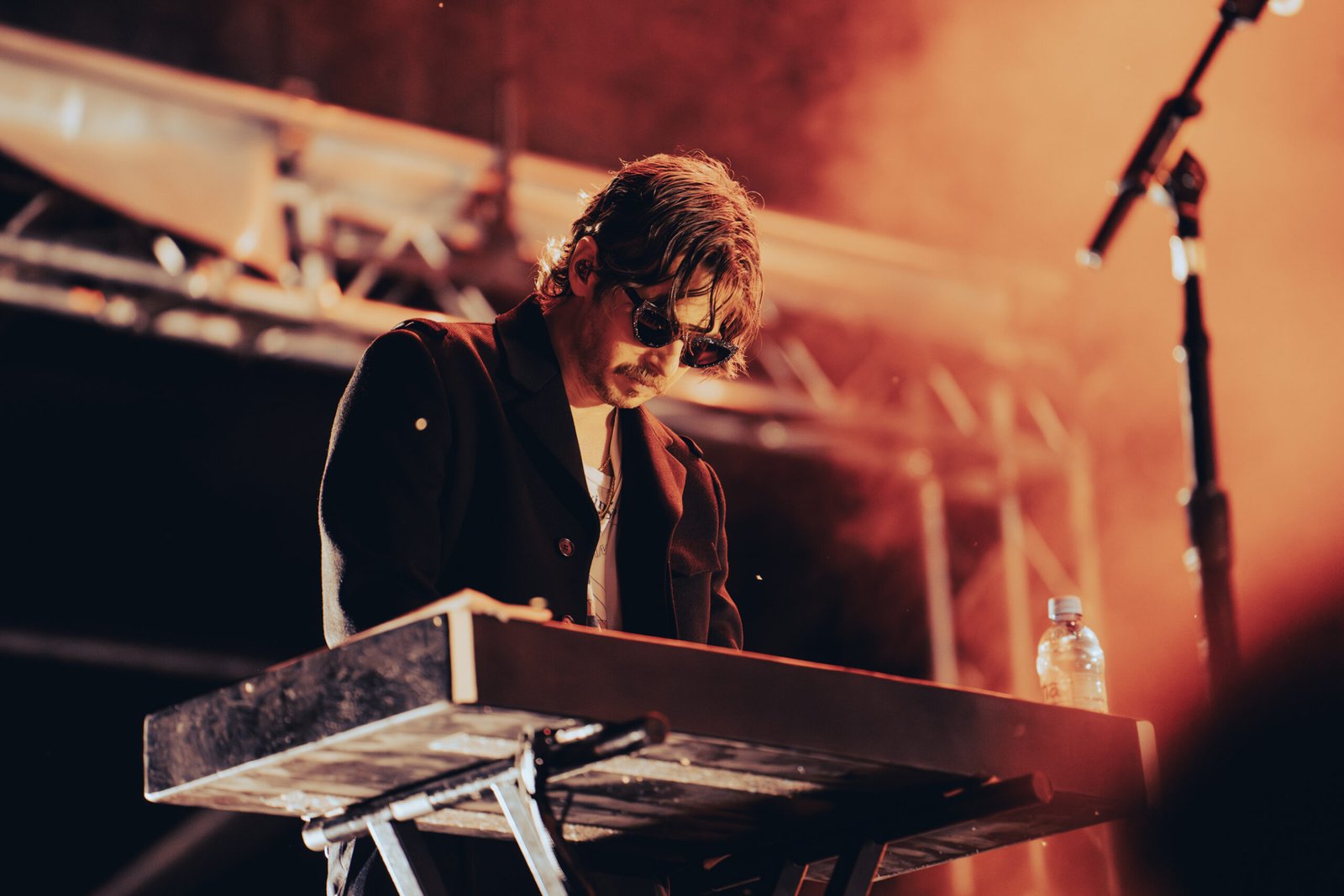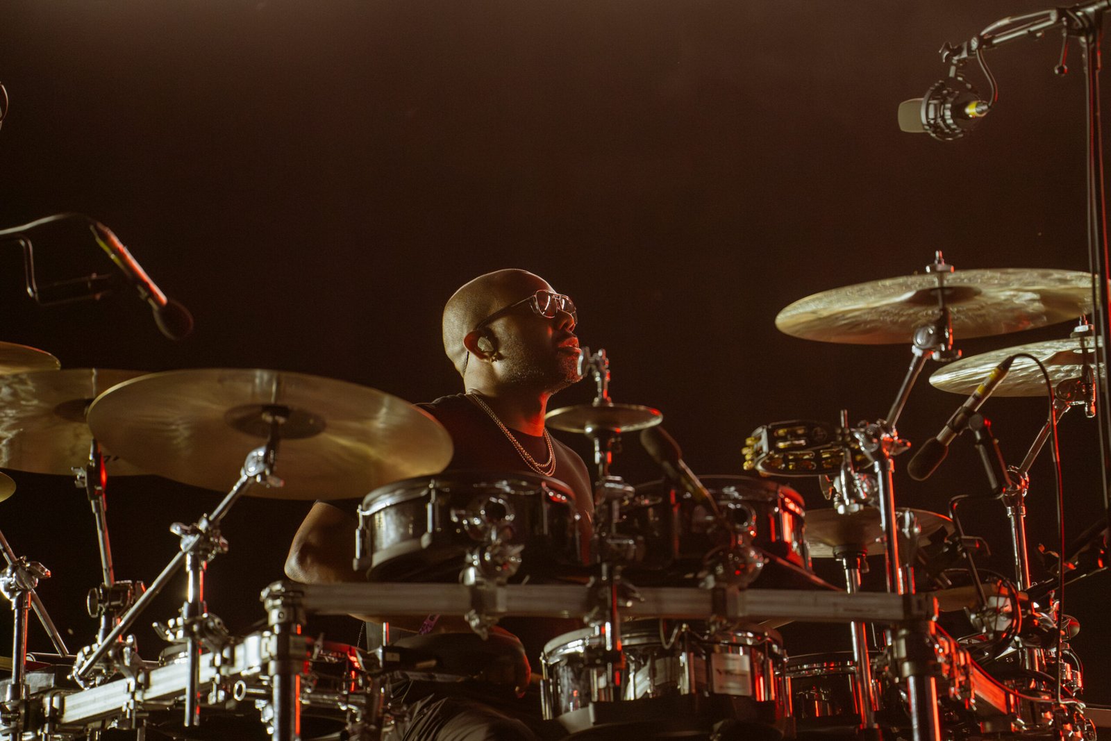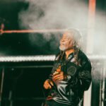 Saksofonist na pozornici iz donje perspektive sa zlatnim svijetlom iznad njega