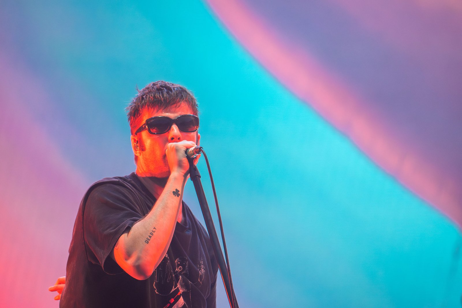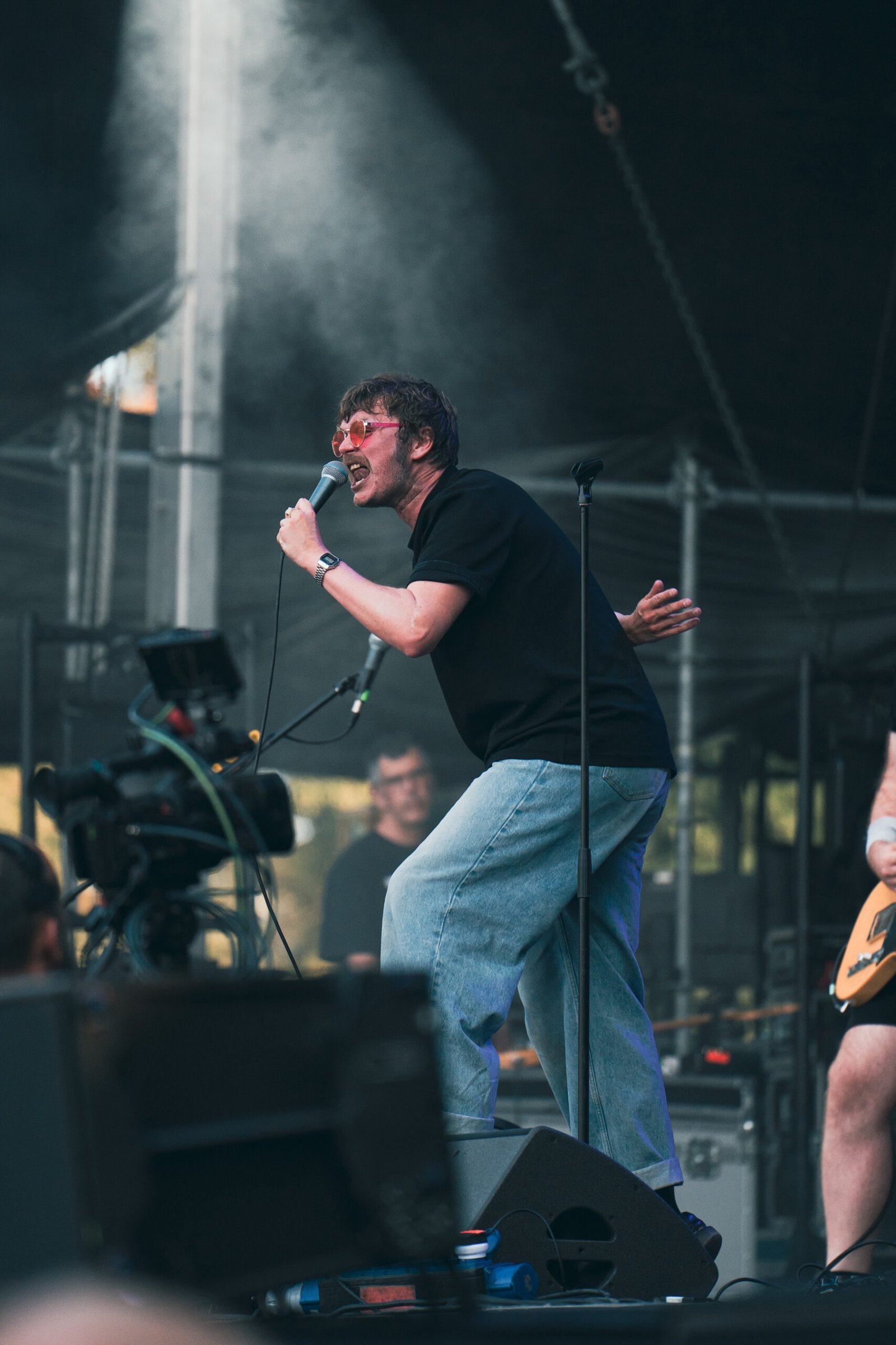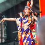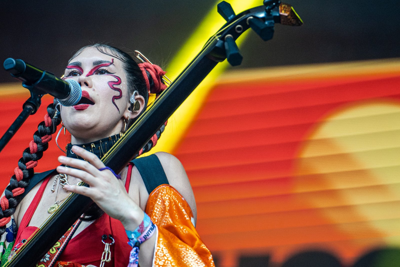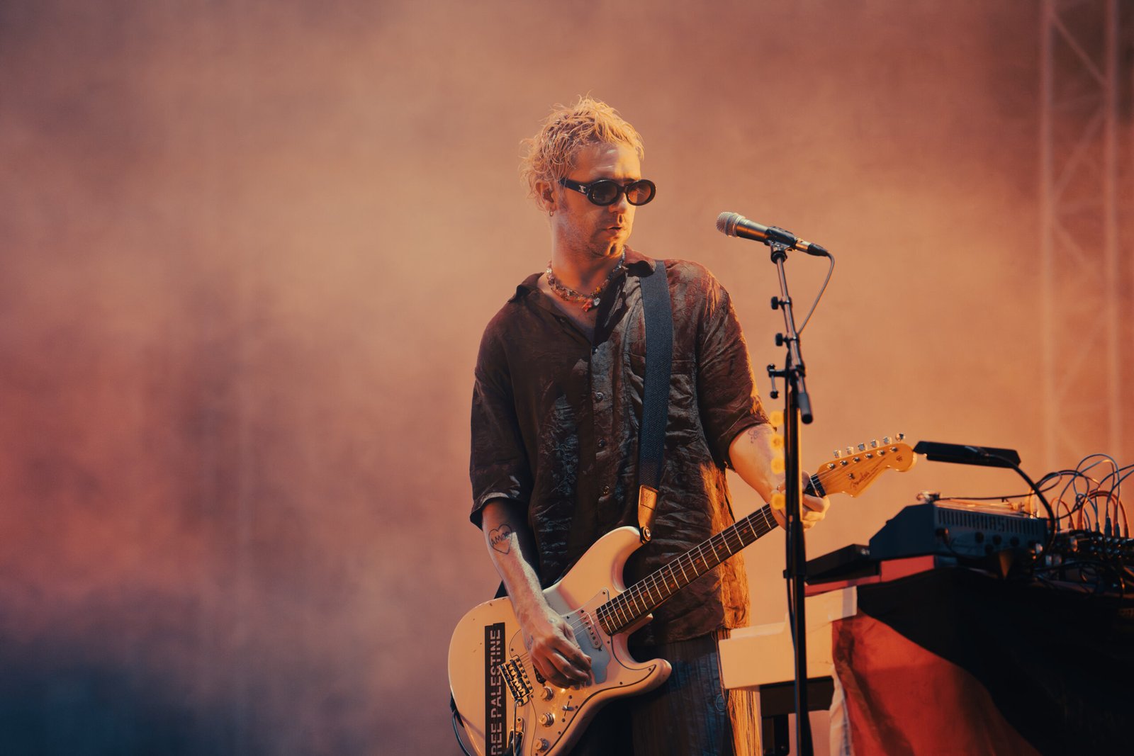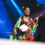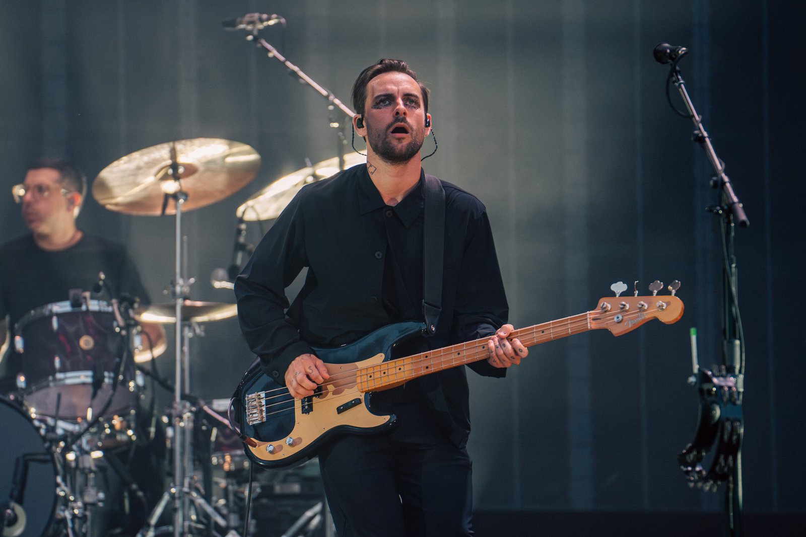 Saksofonist na pozornici iz donje perspektive sa zlatnim svijetlom iznad njega