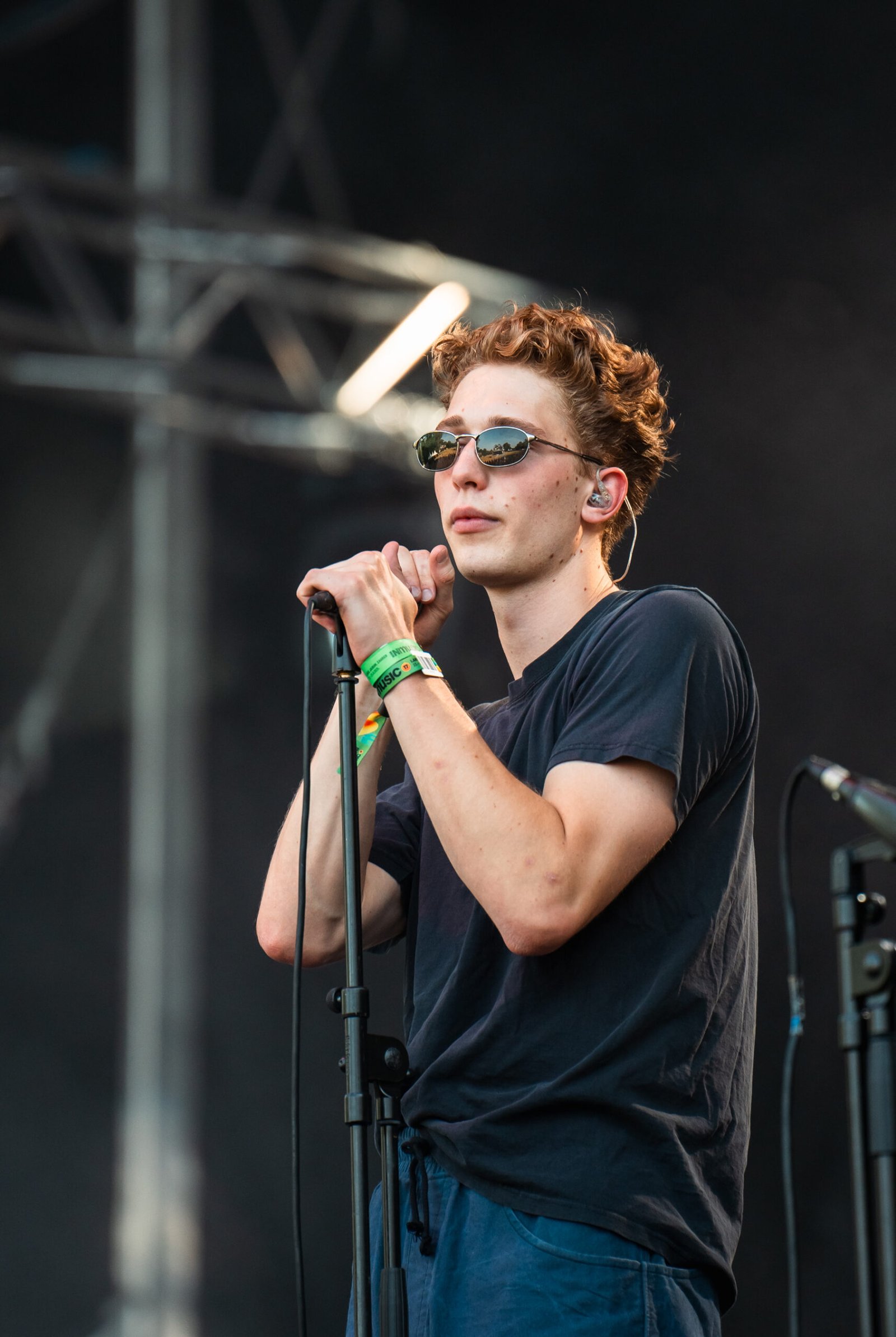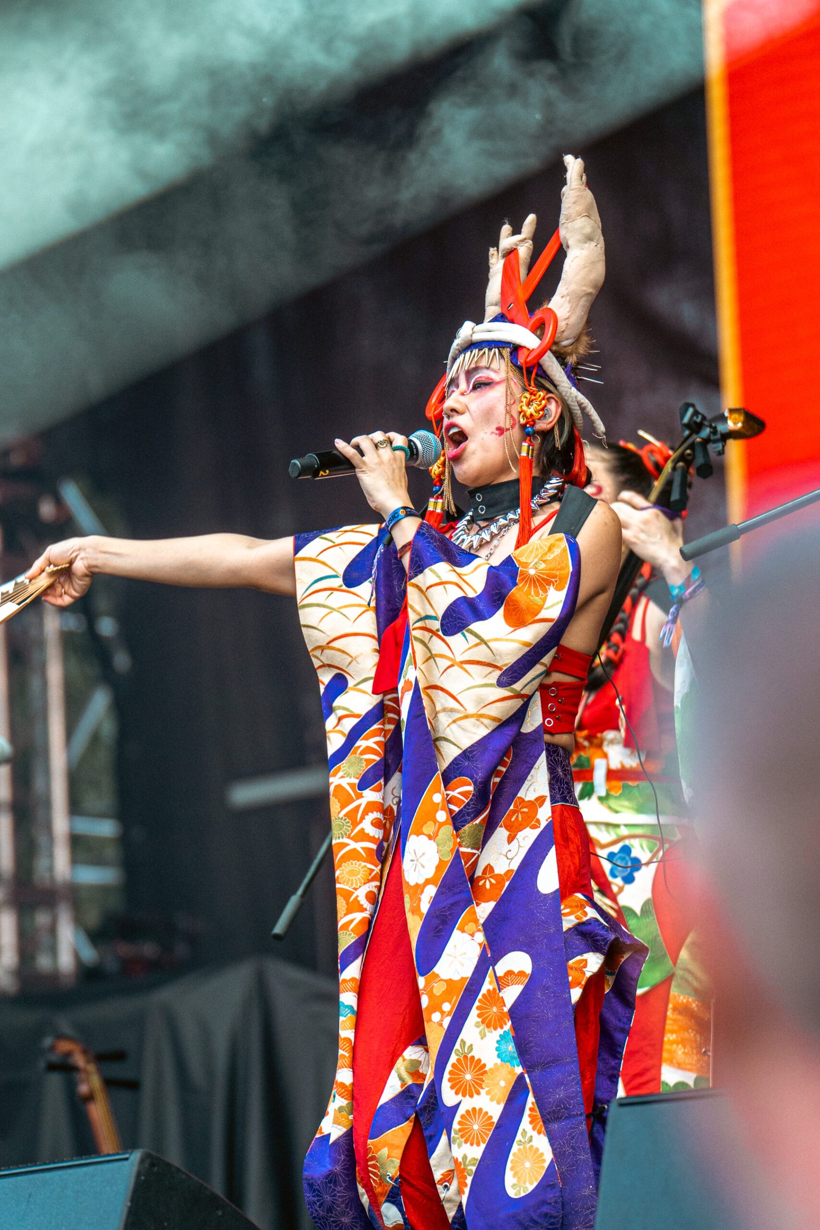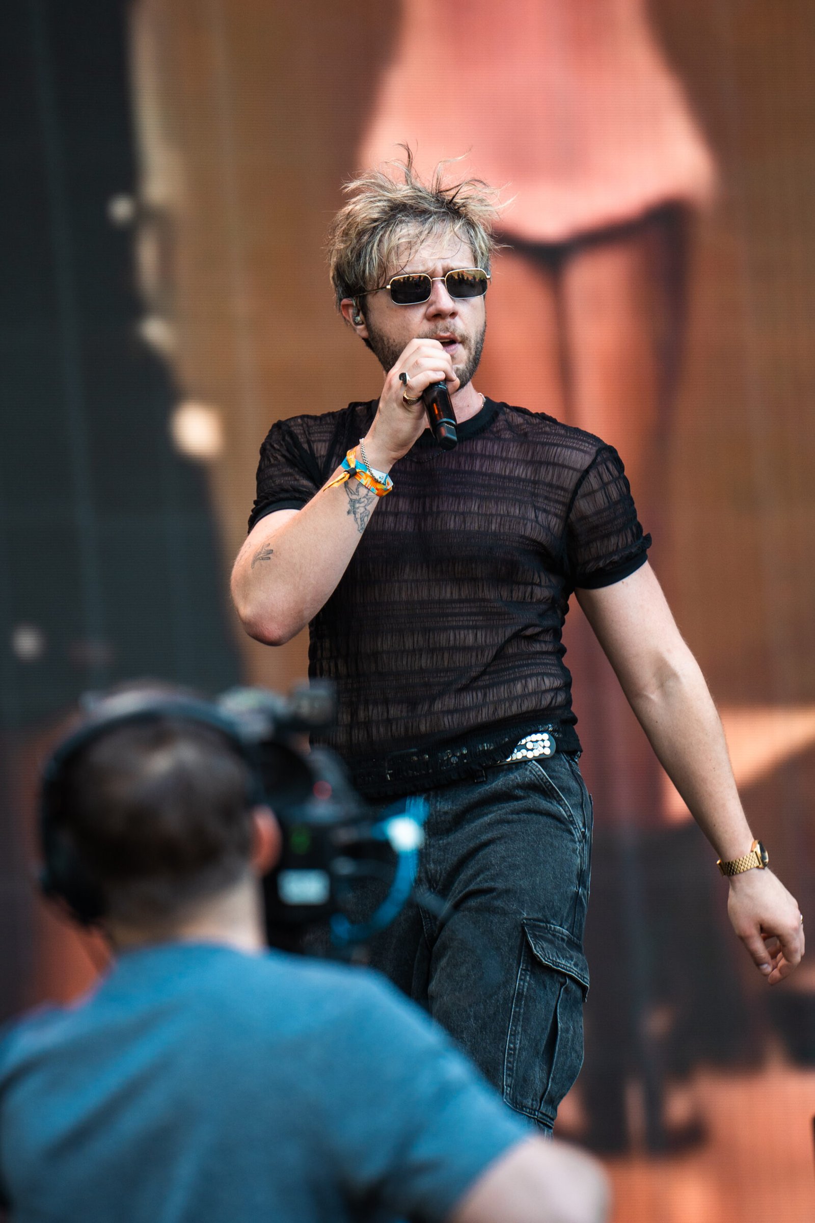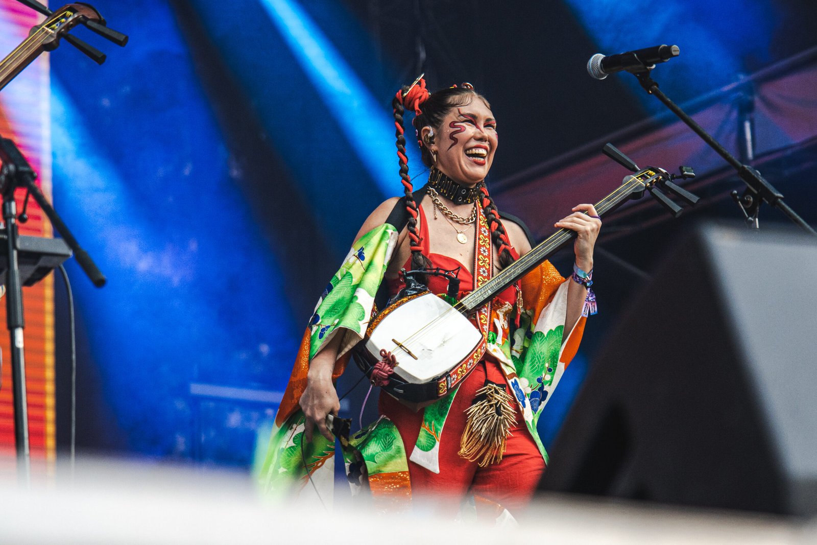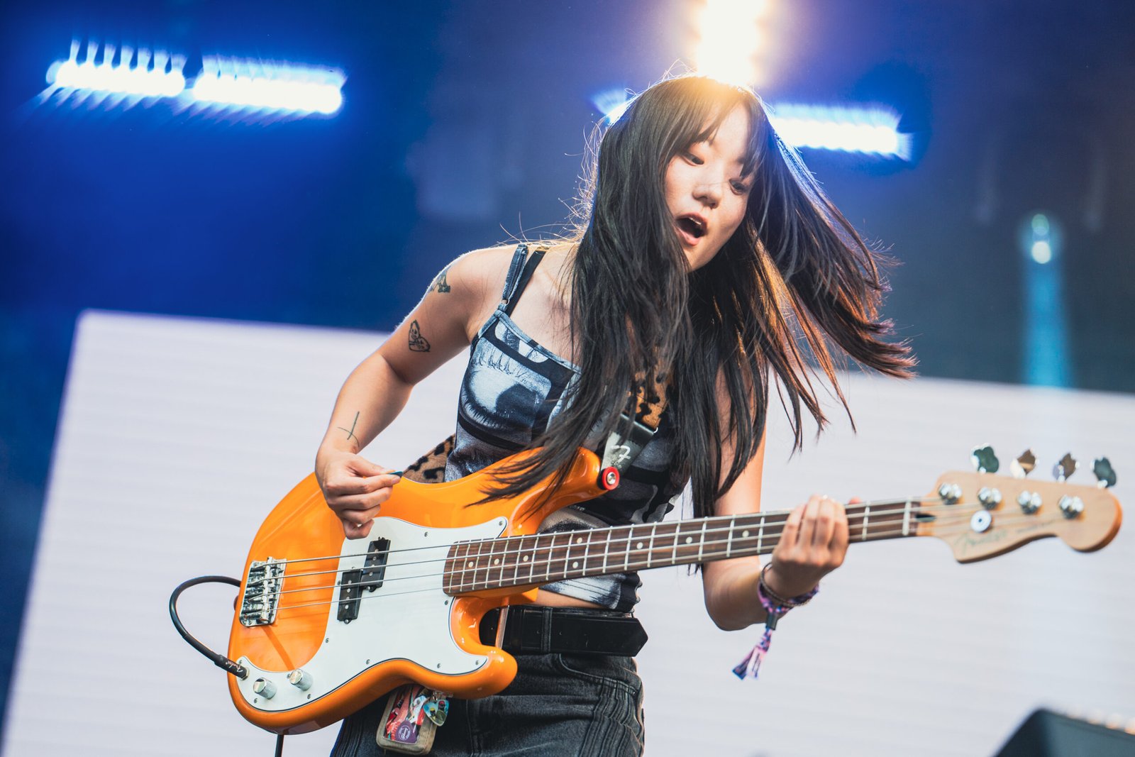 Saksofonist na pozornici iz donje perspektive sa zlatnim svijetlom iznad njega